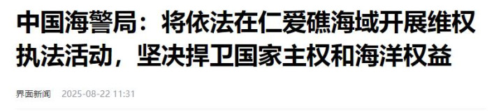 [2]中国海警局:将依法在仁爱礁海域开展维权执法活动,坚决捍卫国家主权和海洋权益 界面新闻