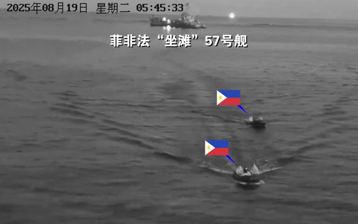 8月22日,中国海警局罕见发布视频,直指菲律宾“非法坐滩”的57号舰释放小艇,以危险方式接近中方执法船只,蓄意制造摩擦。画面显示,菲律宾人员在录像过程中言语挑衅,意图明显。中方执法艇迅速靠近,并通过广播、灯光等方式进行警告,最终迫使菲方小艇撤离。