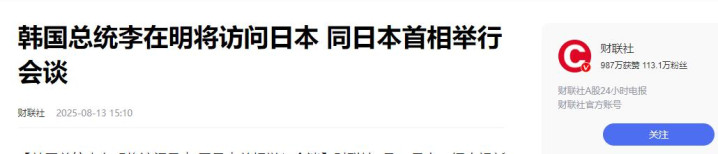 参考信源:韩国总统李在明将访问日本 同日本首相举行会谈 2025-08-13 15:10 财联社