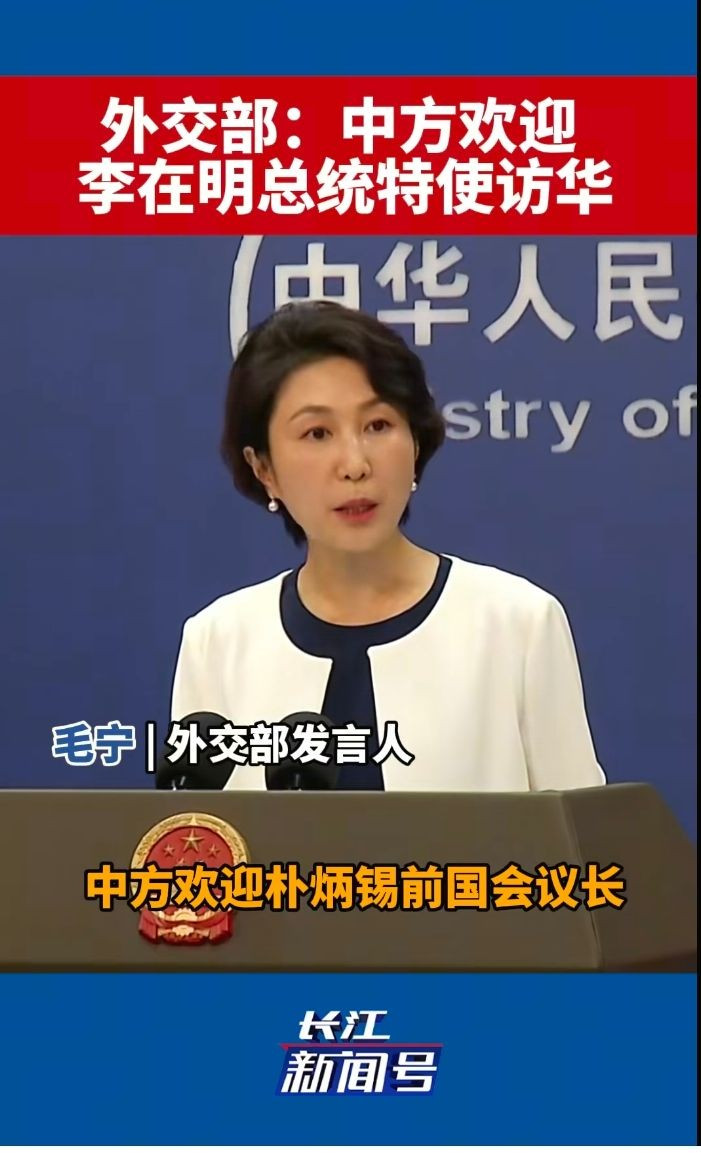媒体在8月18日左右披露了韩国计划向北京派遣特使的消息,访问时间计划在8月25日前后。这位特使的身份是前国会议长朴炳锡,他将代表李在明总统,并携带总统的亲笔信函。对此,中国外交部发言人毛宁在8月22日确认,欢迎韩方特使来访。这个“欢迎”的表态,即便属于外交惯例,也被认为给李在明带来了安心感,是对韩方释放友好信号的积极反馈。